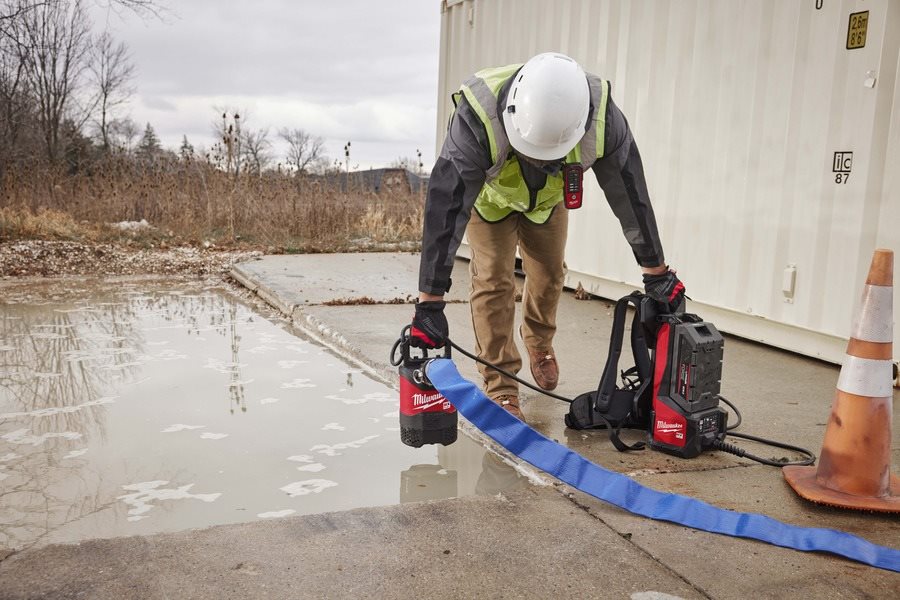 Een droge werkplek is essentieel bij betonconstructies. De MX FUEL™ Dompelpomp biedt tot 2,5 uur looptijd en kan tot 2600 liter per lading verpompen. Met drie bedieningsmodi en een maximale snelheid van 320 liter per minuut is deze pomp ontworpen voor maximale controle en efficiëntie, met een pomphoogte tot 18 meter.